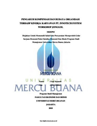 SOPANDI, YOGI (2018) PENGARUH KOMPENSASI DAN BUDAYA ORGANISASI TERHADAP KINERJA KARYAWAN PT. INNOTECH SYSTEM WORKSHOP JONGGOL. S1 thesis, UNIVERSITAS MERCU BUANA - BUNCIT.