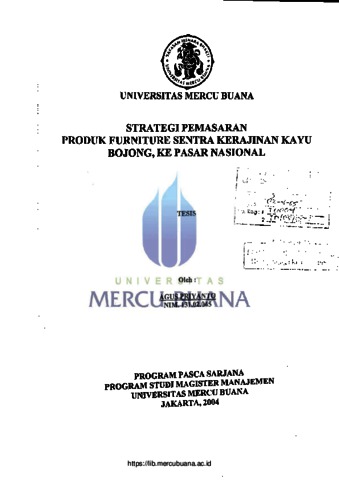 PRIYANTO, AGUS (2004) STRATEGI PEMASARAN PRODUK FURNITURE SENTRA KERAJINAN KAYU BOJONG, KE PASAR NASIONAL. S2 thesis, Universitas Mercu Buana Jakarta.