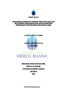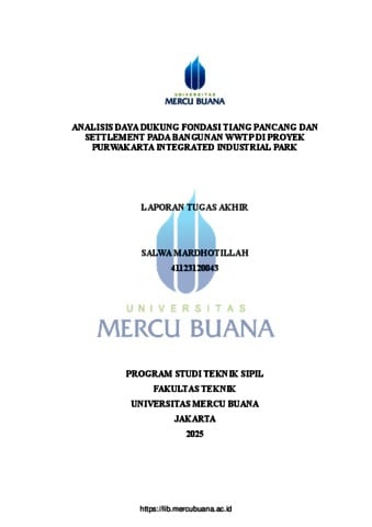 MARDHOTILLAH, SALWA (2025) ANALISIS DAYA DUKUNG FONDASI TIANG PANCANG DAN SETTLEMENT PADA BANGUNAN WWTP DI PROYEK PURWAKARTA INTEGRATED INDUSTRIAL PARK. S1 thesis, Universitas Mercu Buana Jakarta.