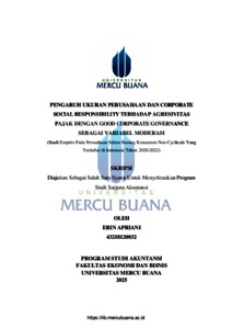 APRIANI, ERIN (2025) PENGARUH UKURAN PERUSAHAAN DAN CORPORATE SOCIAL RESPONSIBILITY TERHADAP AGRESIVITAS PAJAK DENGAN GOOD CORPORATE GOVERNANCE SEBAGAI VARIABEL MODERASI (Studi Empiris Pada Perusahaan Sektor Barang Konsumen Non-Cyclicals Yang Terdaftar di Indonesia Tahun 2020-2022). S1 thesis, Universitas Mercu Buana Jakarta.