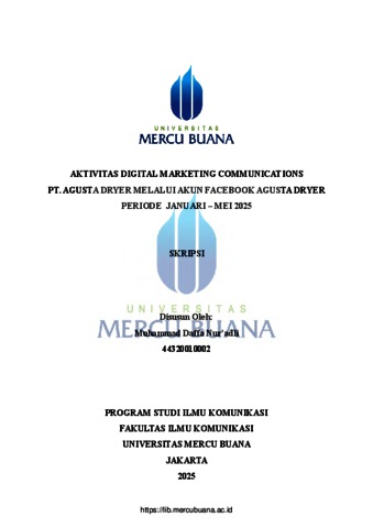 NUR'ADLI, MUHAMMAD DAFFA (2025) AKTIVITAS DIGITAL MARKETING COMMUNICATIONS PT. AGUSTA DRYER MELALUI AKUN FACEBOOK AGUSTA DRYER PERIODE JANUARI - MEI 2025. S1 thesis, Universitas Mercu Buana Jakarta.