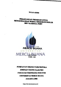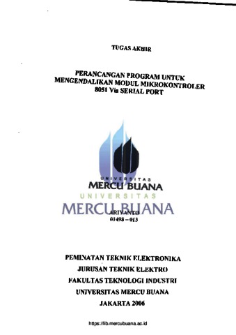 ARIYANTO, ARIYANTO (2006) PERANCANGAN PROGRAM UNTUK MENGENDALIKAN MODUL MIKROKONTROLER 8051 VIA SERIAL PORT. S1 thesis, Universitas Mercu Buana Jakarta.