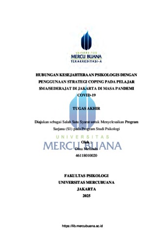 MEILINDA, DINA (2025) HUBUNGAN KESEJAHTERAAN PSIKOLOGIS DENGAN PENGGUNAAN STRATEGI COPING PADA PELAJAR SMA/SEDERAJAT DI JAKARTA DI MASA PANDEMI COVID-19. S1 thesis, Universitas Mercu Buana Jakarta.