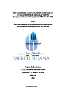 NISA, ULFAHATUN (2018) PENGARUH FREE CASH FLOW, PROFITABILITAS, DAN LEVERAGE TERHADAP KEBIJAKAN HUTANG (Survey pada perusahaan manufaktur yang terdaftar di BEI tahun 2013 – 2015). S1 thesis, UNIVERISTAS MERCU BUANA - BUNCIT.