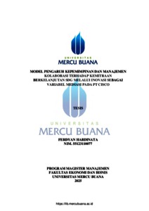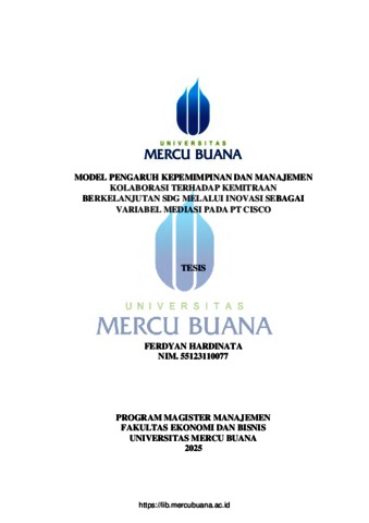 HARDINATA, FERDYAN (2025) MODEL PENGARUH KEPEMIMPINAN DAN MANAJEMEN KOLABORASI TERHADAP KEMITRAAN BERKELANJUTAN SDG MELALUI INOVASI SEBAGAI VARIABEL MEDIASI PADA PT CISCO. S2 thesis, Universitas Mercu Buana Jakarta.