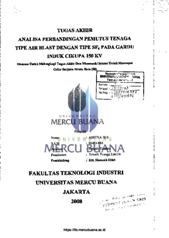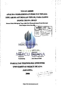 SACHRIA, ADITYA MUNANDAR (2008) ANALISA PERBANDINGAN PEMUTUS TENAGA TIPE AIR BLAST DENGAN TIPE SF6, PADA GARDU INDUK CIKUPA 150 KV. S1 thesis, Universitas Mercu Buana Jakarta.