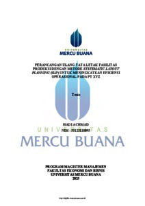 ACHMAD, HADI (2025) PERANCANGAN ULANG TATA LETAK FASILITAS PRODUKSI DENGAN METODE SYSTEMATIC LAYOUT PLANNING (SLP) UNTUK MENINGKATKAN EFISIENSI OPERASIONAL PADA PT XYZ. S2 thesis, UNIVERSITAS MERCU BUANA - BUNCIT.