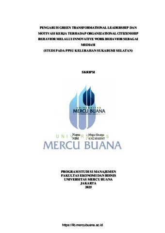 OSAMA, MEGA (2025) PENGARUH GREEN TRANSFORMATIONAL LEADERSHIP DAN MOTIVASI KERJA TERHADAP ORGANIZATIONAL CITIZENSHIP BEHAVIOR MELALUI INNOVATIVE WORK BEHAVIOR SEBAGAI MEDIASI (STUDI PADA PPSU KELURAHAN SUKABUMI SELATAN). S1 thesis, Universitas Mercu Buana Jakarta.