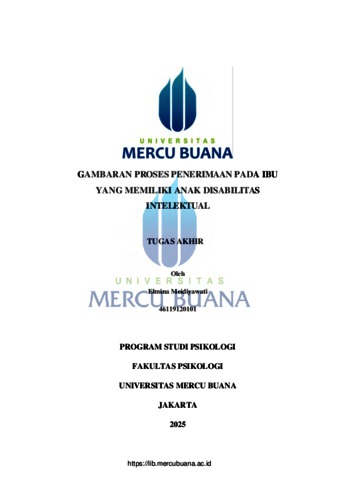 MEIDIYAWATI, ELMINA (2025) GAMBARAN PROSES PENERIMAAN PADA IBU YANG MEMILIKI ANAK DISABILITAS INTELEKTUAL. S1 thesis, Universitas Mercu Buana Jakarta.