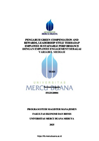 ANGGARA, NORMAN (2025) PENGARUH GREEN COMPENSATION AND REWARDS, LEADERSHIP STYLE TERHADAP EMPLOYEE SUSTAINABLE PERFORMANCE DENGAN EMPLOYEE ENGAGEMENT SEBAGAI VARIABEL MEDIASI. S2 thesis, Universitas Mercu Buana Jakarta.