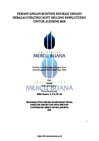 SARAH, SARAH (2025) PERANCANGAN KONTEN EDUKASI DESAIN SEBAGAI STRATEGI SOFT SELLING FAWQ STUDIO UNTUK AUDIENS B2B. S1 thesis, Universitas Mercu Buana Jakarta.
