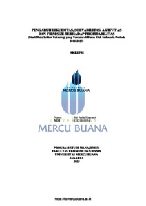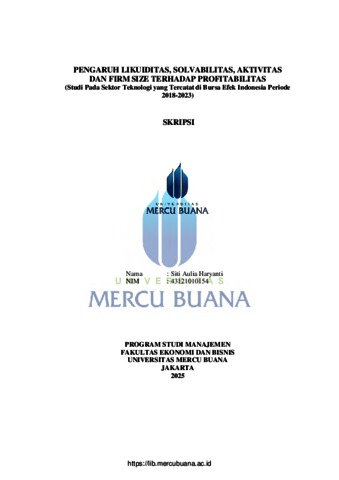 HARYANTI, SITI AULIA (2025) PENGARUH LIKUIDITAS, SOLVABILITAS, AKTIVITAS DAN FIRM SIZE TERHADAP PROFITABILITAS (Studi Pada Sektor Teknologi yang Tercatat di Bursa Efek Indonesia Periode 2018-2023). S1 thesis, Universitas Mercu Buana Jakarta.