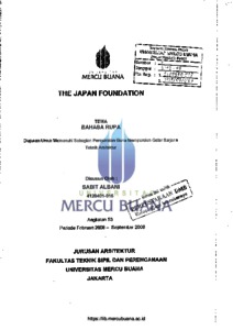 ALBANI, SABIT (2008) THE JAPAN FOUNDATION TEMA: BAHASA RUPA. S1 thesis, Universitas Mercu Buana Jakarta.