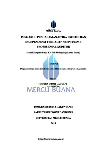 CAHYANI, WINDIA INDAH (2025) PENGARUH PENGALAMAN, ETIKA PROFESI DAN INDEPENDENSI TERHADAP SKEPTISISME PROFESIONAL AUDITOR (Studi Empiris Pada KAP di Wilayah Jakarta Barat). S1 thesis, Universitas Mercu Buana Jakarta.