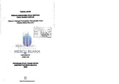 PRANOTO, HADI (2008) PERANCANGAN MULTIPLE IGNITION PADA KIJANG SERI 5K. S1 thesis, Universitas Mercu Buana Jakarta.