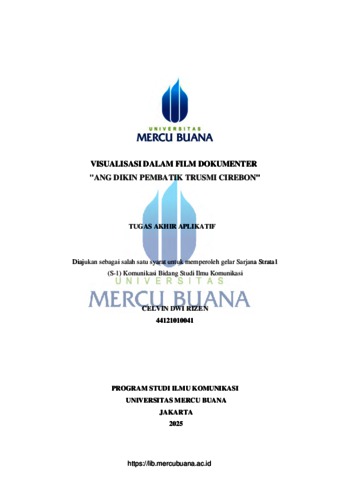 RIZEN, CELVIN DWI (2025) VISUALISASI DALAM FILM DOKUMENTER "ANG DIKIN PEMBATIK TRUSMI CIREBON". S1 thesis, Universitas Mercu Buana Jakarta.