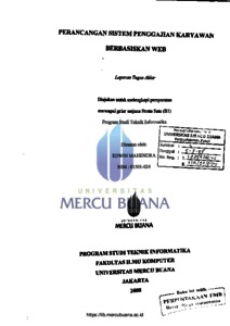 MAHENDRA, EDWIN (2008) PERANCANGAN SISTEM PENGGAJIAN KARYAWAN BERBASISKAN WEB. S1 thesis, Universitas Mercu Buana Jakarta.