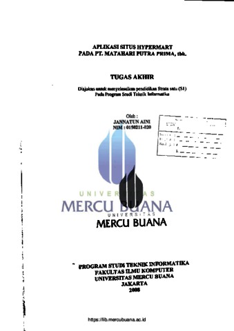 AINI, JANNATUN (2008) APLIKASI SITUS HYPERMART PADA PT. MATAHARI PUTRA PRIMA, TBK. S1 thesis, Universitas Mercu Buana Jakarta.