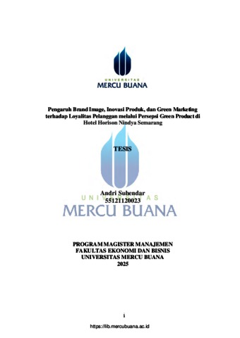 SUHENDAR, ANDRI (2025) PENGARUH BRAND IMAGE, INOVASI PRODUK, DAN GREEN MARKETING TERHADAP LOYALITAS PELANGGAN MELALUI PERSEPSI GREEN PRODUCT DI HOTEL HORISON NINDYA SEMARANG. S2 thesis, Universitas Mercu Buana Jakarta.