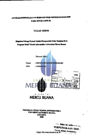 PUSPASARI, ERNI LUPI RATIH (2008) APLIKASI PERPUSTAKAAN BERBASIS WEB MENGGUNAKAN PHP PADA SETJEN DPR-RI. S1 thesis, Universitas Mercu Buana Jakarta.