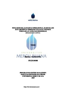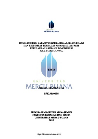 MAHENDRA, BHIMA (2025) PENGARUH ESG, KAPASITAS OPERASIONAL, RASIO KLAIM DAN LIKUIDITAS TERHADAP FINANCIAL DISTRESS PERUSAHAAN ASURANSI DIMODERASI RISK-BASED CAPITAL. S2 thesis, Universitas Mercu Buana Jakarta.