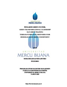 SAPUTRO, MUHAMMAD RASYID (2025) PENGARUH GREEN CULTURE, GREEN TRASNFORMATIONAL LEADERSHIP DAN GREEN TRAINING TERHADAP EMPLOYEE GREEN BEHAVIOR DIMEDIASI OLEH GREEN COMMITMENT. S2 thesis, Universitas Mercu Buana Jakarta.