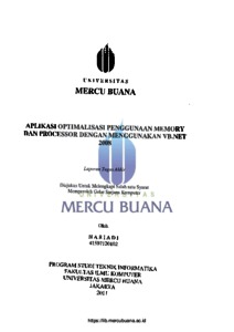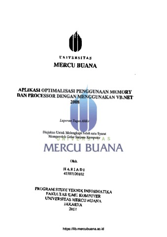 HARIADI, HARIADI (2008) APLIKASI OPTIMALISASI PENGGUNAAN MEMORY DAN PROCESSOR DENGAN MENGGUNAKAN VB.NET 2008. S1 thesis, Universitas Mercu Buana Jakarta.