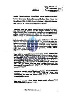 Transportasi udara pada dasarnya berkembang pesat, mengingat kelebihannya yang dapat menempuh perjalanan jauh dan merupakan alternatif yang paling masuk akal ketika waktu menjadi tuntutan. Bandara akhirnya menjadi salah satu gerbang penting keluar-masuk suatu negara. Mau tidak mau bandara harus berbenah berbagai sisi demi kepuasan pengguna moda transportasi udara. Perlu diperhatikan bahwa transisi penumpang dari sisi darat (land side) ke sisi udara (air side) berpusat di terminal. Dengan kata lain terminal adalah pusat kegiatan pengguna jasa, oleh sebab itu penting untuk dijaga kenyamanan terminal. Cara untuk mengetahui apakah suatu terminal masih layak dari segi luasan maka perlu diadakan analisa teknis luasan mengacu pada standar-standar FAA dan IATA, juga perlu diperhatikan persepsi penumpang terhadap Terminal (Importance-Performance Analysis). Tugas Akhir ini mengambil Terminal Internasional Bandara Soekarno-Hatta sebagai studi kasus. Setelah dilakukan Importance-Performance Analysis terhadap sembilan ruangan di Sub Terminal D dan F, diketahui bahwa Area Ruang Tunggu (Lobby Waiting Area) dan Restoran (Food and Beverage) menurut penumpang perlu diprioritaskan untuk diperluas. Dari hasil uji hipotesa dengan Chi Kwadrat diketahui bahwa Kantor Penjualan Tiket dan Pelayanan Penunjang (Airline Ticket Office (ATO) and Support Space) dan Ruang Terbuka (Concessions) tidak mempengaruhi kepentingan/kepuasan pengguna jasa, sedangkan ketujuh area lainnya mempengaruhi. Sementara itu hasil dari Analisa Teknik Luasan Terminal diketahui bahwa total kebutuhan luasan Subterminal 2D sebesar 51996,59m² berarti 24,16. m²/penumpang jam puncak dan Subterminal 2E 42906,64 m² berarti 24,6 m²/penumpang jam puncak. Kata kunci: terminal, terminal bandara, luasan terminal, kebutuhan luasan terminal, Importance-Performance Analysis.