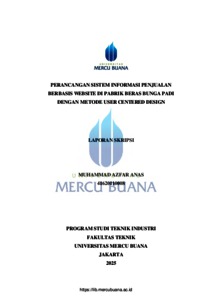 ANAS, MUHAMMAD AZFAR (2025) PERANCANGAN SISTEM INFORMASI PENJUALAN BERBASIS WEBSITE DI PABRIK BERAS BUNGA PADI DENGAN METODE USER CENTERED DESIGN. S1 thesis, Universitas Mercu Buana Jakarta.