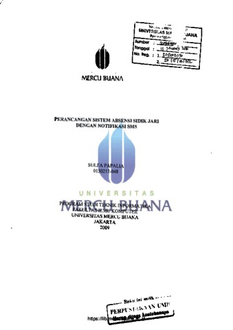 PAPALIA, SULFA (2009) PERANCANGAN SISTEM ABSENSI SIDIK JARI DENGAN NOTIFIKASI SMS. S1 thesis, Universitas Mercu Buana Jakarta.