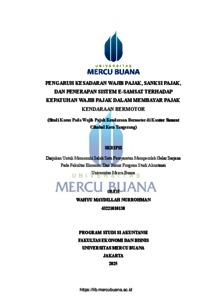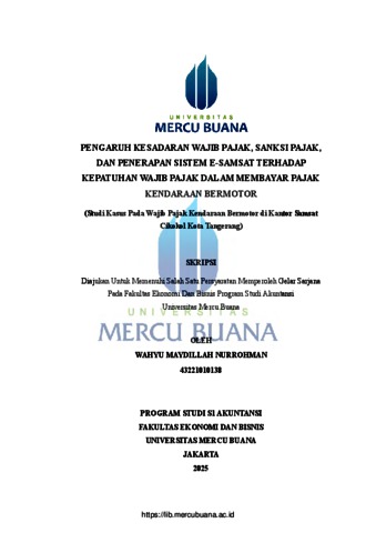 NURROHMAN, WAHYU MAYDILLAH (2025) PENGARUH KESADARAN WAJIB PAJAK, SANKSI PAJAK, DAN PENERAPAN SISTEM E-SAMSAT TERHADAP KEPATUHAN WAJIB PAJAK DALAM MEMBAYAR PAJAK KENDARAAN BERMOTOR (Studi Kasus Pada Wajib Pajak Kendaraan Bermotor di Kantor Samsat Cikokol Kota Tangerang). S1 thesis, Universitas Mercu Buana Jakarta.