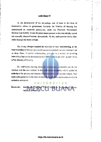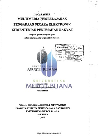 APRIANSYAH, MUHAMMAD ARIS (2012) MULTIMEDIA PEMBELAJARAN PENGADAAN SECARA ELEKTRONIK KEMENTERIAN PERUMAHAN RAKYAT. S1 thesis, Universitas Mercu Buana Jakarta.