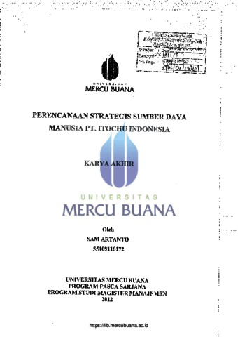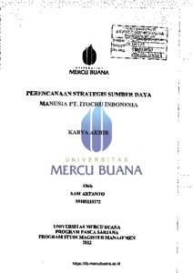 ARTANTO, SAM (2012) PERENCANAAN STRATEGIS SUMBER DAYA MANUSIA PT. ITOCHU INDONESIA. S2 thesis, Universitas Mercu Buana Jakarta.