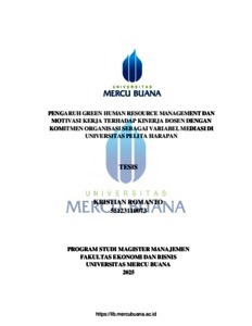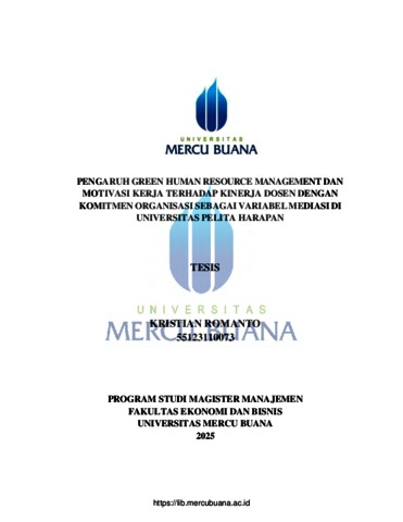 ROMANTO, KRISTIAN (2025) PENGARUH GREEN HUMAN RESOURCE MANAGEMENT DAN MOTIVASI KERJA TERHADAP KINERJA DOSEN DENGAN KOMITMEN ORGANISASI SEBAGAI VARIABEL MEDIASI DI UNIVERSITAS PELITA HARAPAN. S2 thesis, Universitas Mercu Buana Jakarta.