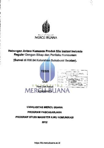 ASTUTI, FERA DWI (2012) Hubungan Antara Kemasan Produk Mie Instant Indomie Reguler Dengan Sikap dan Perilaku Konsumen (Survei di RW.04 Kelurahan Sukabumi Selatan). S2 thesis, Universitas Mercu Buana Jakarta.