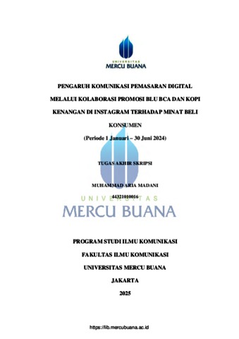 MADANI, MUHAMMAD ARIA (2025) PENGARUH KOMUNIKASI PEMASARAN DIGITAL MELALUI KOLABORASI PROMOSI BLU BCA DAN KOPI KENANGAN DI INSTAGRAM TERHADAP MINAT BELI KONSUMEN (Periode 1 Januari - 30 Juni 2024). S1 thesis, Universitas Mercu Buana Jakarta.