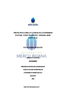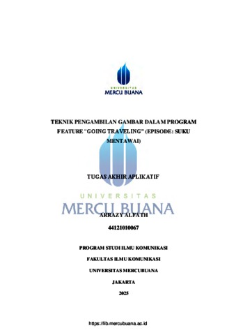 ALFATH, ARRAZY (2025) TEKNIK PENGAMBILAN GAMBAR DALAM PROGRAM FEATURE "GOING TRAVELING" (EPISODE: SUKU MENTAWAI). S1 thesis, Universitas Mercu Buana Jakarta.