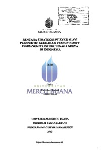 | Uncontrolled Keywords: | feed in tariff, independent power producer, backward integration, market penetration, customer relationship managemem BUANA MERO |