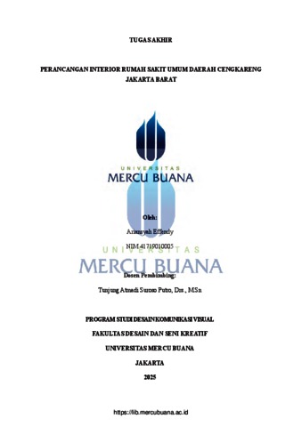 EFFENDY, ARIANSYAH (2025) PERANCANGAN INTERIOR RUMAH SAKIT UMUM DAERAH CENGKARENG JAKARTA BARAT. S1 thesis, Universitas Mercu Buana Jakarta.