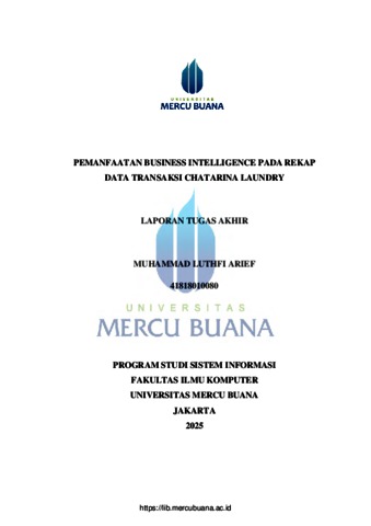 ARIEF, MUHAMMAD LUTHFI (2025) PEMANFAATAN BUSINESS INTELLIGENCE PADA REKAP DATA TRANSAKSI CHATARINA LAUNDRY. S1 thesis, Universitas Mercu Buana Jakarta.