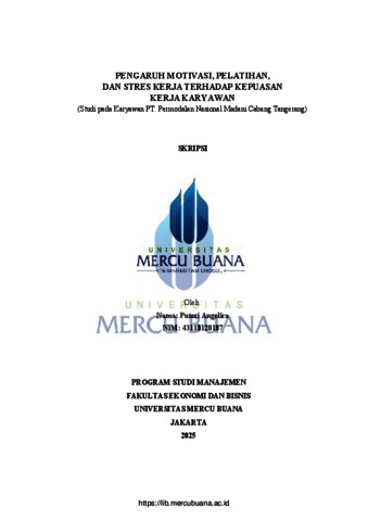 ANGELICA, PUTERI (2025) PENGARUH MOTIVASI, PELATIHAN, DAN STRES KERJA TERHADAP KEPUASAN KERJA KARYAWAN (Studi pada Karyawan PT. Permodalan Nasional Madani Cabang Tangerang). S1 thesis, Universitas Mercu Buana Jakarta.
