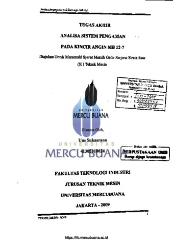 SUKASRANA, UUS (2009) ANALISA SISTEM PENGAMAN PADA KINCIR ANGIN MB 12-7. S1 thesis, Universitas Mercu Buana Jakarta.