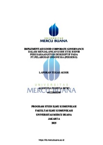 The implementation of Good Corporate Governance (GCG) principles is highly important in ensuring transparency, accountability, and professionalism in corporate governance. Amid increasing demands for better governance, PT Pelabuhan Indonesia (Persero), as a state-owned enterprise ( ), is required to uphold the business code of ethics in all of its operational activities. This study was conducted to examine and analyze how the principles of GCG are implemented in supporting the enforcement of the business code of ethics within PT Pelabuhan Indonesia (Persero). The theory used in this research refers to the Komite Nasional Kebijakan Governance (KNKG, 2006) as cited in the journal by Iestyn Kelvianto and Ronny H. Mustamu, which outlines five main principles that must be applied by companies: transparency, accountability, responsibility, independence, and fairness or equality. These principles serve as a guideline in the implementation of corporate policies to ensure compliance with ethical standards and applicable regulations. The method used in this study is a qualitative approach with a constructivist paradigm, in which the researcher aims to understand the meaning of GCG implementation from the perspective of internal actors within the company. Data collection was carried out through in-depth interviews with three key informants who hold strategic positions and possess a thorough understanding of the company’s governance policies and practices. Data validation was conducted using source triangulation techniques to ensure data credibility. The results of the study show that PT Pelabuhan Indonesia (Persero) consistently applies six core GCG principles, namely transparency, accountability, responsibility, independence, fairness and equality, and trust. The implementation of these principles not only forms an accountable work system, but also strengthens trust from stakeholders and supports the company’s long-term sustainability. Keywords: Good Corporate Governance, business code of ethics, PT Pelabuhan Indonesia (Persero) Penerapan prinsip Good Corporate Governance (GCG) sangat penting dalam menjamin transparansi, akuntabilitas, serta profesionalisme dalam tata kelola perusahaan. Di tengah meningkatnya tuntutan akan tata kelola yang baik, PT Pelabuhan Indonesia (Persero) sebagai perusahaan dituntut untuk menjunjung tinggi kode etik bisnis dalam seluruh aktivitas operasionalnya. Penelitian ini dilakukan untuk mengetahui dan menganalisis bagaimana implementasi prinsip-prinsip GCG dalam mendukung pelaksanaan kode etik bisnis di lingkungan PT Pelabuhan Indonesia (Persero). Teori yang digunakan dalam penelitian ini merujuk pada Komite Nasional Kebijakan Governance (KNKG, 2006) dalam jurnal Iestyn Kelvianto dan Ronny H. Mustamu, yang menetapkan lima prinsip utama GCG yang harus diterapkan oleh perusahaan, yaitu: transparansi, akuntabilitas, responsibilitas, independensi, serta kewajaran atau kesetaraan. Prinsip-prinsip ini menjadi acuan dalam pelaksanaan kebijakan perusahaan agar sesuai dengan standar etika dan regulasi yang berlaku. Metode yang digunakan dalam penelitian ini adalah pendekatan kualitatif dengan paradigma konstruktivis. Teknik pengumpulan data dilakukan melalui wawancara mendalam terhadap tiga informan utama yang memiliki posisi strategis di perusahaan dan memahami implementasi GCG secara langsung. Validasi data dilakukan melalui teknik triangulasi sumber untuk memastikan keabsahan informasi. Hasil penelitian menunjukkan bahwa PT Pelabuhan Indonesia (Persero) secara konsisten menerapkan enam prinsip utama GCG, yaitu keterbukaan (transparency), akuntabilitas (accountability), tanggung jawab (responsibility), kemandirian (independency), kewajaran dan kesetaraan (fairness), serta kepercayaan (trusted). Implementasi prinsip-prinsip tersebut tidak hanya membentuk sistem kerja yang akuntabel, tetapi juga meningkatkan kepercayaan dari pemangku kepentingan dan mendukung keberlanjutan usaha perusahaan. Kata kunci: Komunikasi, Public Relations, Good Corporate Governance, kode etik bisnis, PT Pelabuhan Indonesia (Persero).