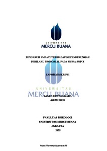 DIWANGKARA, BAGUS (2025) PENGARUH EMPATI TERHADAP KECENDERUNGAN PERILAKU PROSOSIAL PADA SISWA SMP X. S1 thesis, Universitas Mercu Buana Jakarta.