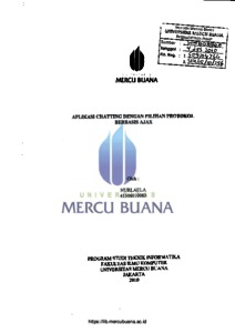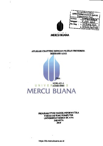 NURLAELA, NURLAELA (2010) APLIKASI CHATTING DENGAN PILIHAN PROTOKOL BERBASIS AJAX. S1 thesis, Universitas Mercu Buana Jakarta.