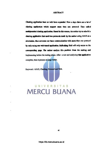 Aplikasi chatting berbasis web telah berkembang pesat, saat ini ada beberapa aplikasi chatting yang terdapat lebih dari satu protokol atau disebut dengan aplikasi chatting dengan pilihan protokol. Berdasarkan hal tersebut penulis merancang ulang suatu aplikasi chatting dengan pilihan protokol yang dapat dibuat sendiri menggunakan bahasa pemrograman AJAX, sehingga seseorang dapat melakukan komunikasi dengan menggunakan lebih dari satu protokol hanya dengan satu aplikasi saja. Dan proses pembaruan hanya pada bagian halaman yang membutuhkan pembaruan saja. Penulis menganalisa masalah terdiri dari perancangan dan implementasi. Selanjutnya dilakukan pengujian dari program. Setelah dilakukan pengujian dilakukan analisa terhadap aplikasi tersebut. Dengan menghasilkan proses pada halaman aplikasi berjalan dengan baik. Kata kunci: AJAX, Chatting, Protokol dan Web.
