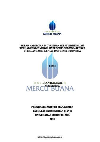 HAMSAH, DIAN (2025) PERAN HAMBATAN INOVASI DAN SKEPTISISME HIJAU TERHADAP NIAT MENOLAK PRODUK GREEN BABY CARE DI KALANGAN MILENIAL DAN GEN Z INDONESIA. S2 thesis, Universitas Mercu Buana Jakarta.