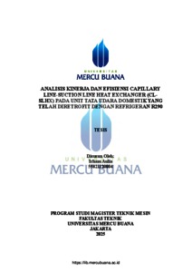 AULIA, IRHAM (2025) ANALISIS KINERJA DAN EFISIENSI CAPILLARY LINE-SUCTION LINE HEAT EXCHANGER (CL-SLHX) PADA UNIT TATA UDARA DOMESTIK YANG TELAH DIRETROFIT DENGAN REFRIGERAN R290. S2 thesis, Universitas Mercu Buana Jakarta.