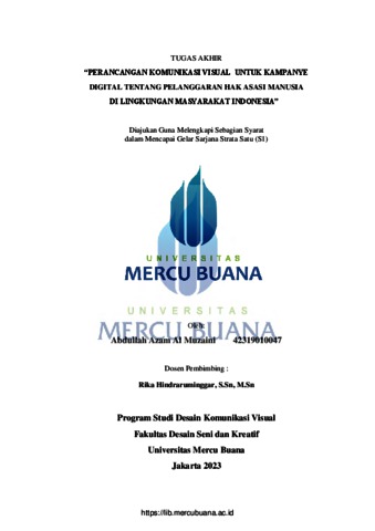 MUZAINI, ABDULLAH AZAM AL (2023) PERANCANGAN KOMUNIKASI VISUAL UNTUK KAMPANYE DIGITAL TENTANG PELANGGARAN HAK ASASI MANUSIA DI LINGKUNGAN MASYARAKAT INDONESIA. S1 thesis, Universitas Mercu Buana Jakarta.