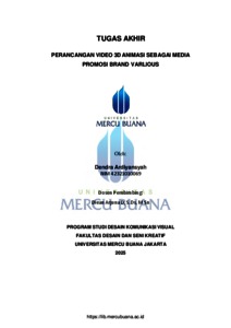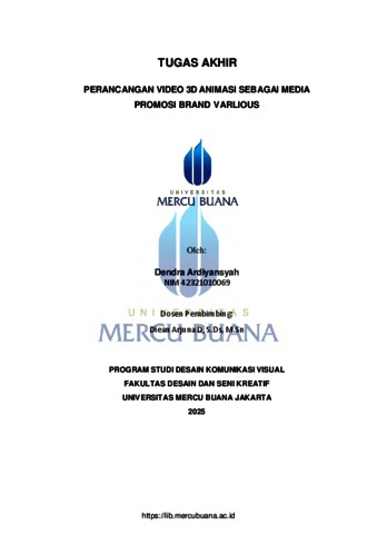 ARDIYANSYAH, DENDRA (2025) PERANCANGAN VIDEO 3D ANIMASI SEBAGAI MEDIA PROMOSI BRAND VARLIOUS. S1 thesis, Universitas Mercu Buana Jakarta.